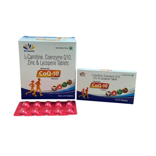 Home Tablets BRUVENTIS COQ-10 BRUVENTIS COQ-10 USES: Used for nutritional deficiencies. PACKING: 10 x 1 x 10 COMPOSITION: L-Carnitine 250mg + Coenzyme Q10 100mg + Zinc 12mg + Lycopene 2500 mcg Category: Tablets Related products BRUQS 200Tablets NAPRONEW 500Tablets FOLIFIRSTTablets CINAMODE-DTablets