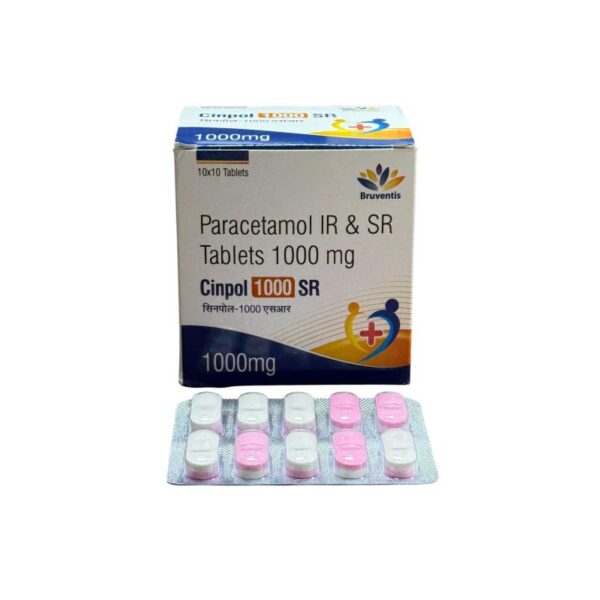 Home Tablets CINPOL 1000 SR CINPOL 1000 SR USES: Used in the treatment of pain and fever. PACKING: 10 x 10 COMPOSITION: Paracetamol (As Immediate Release) 300mg + Paracetamol (As Sustained Release) 700mg (BLISTER) Category: Tablets Related products MECOBOND CD 3Tablets BRUQS 200Tablets LINZOSMARTTablets MEDROPAUSETablets