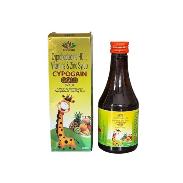 Home Syrup/Liquid CYPOGAIN GOLD CYPOGAIN GOLD USES: Treats loss of appetite, weight loss and intestinal malabsorption. PACKING: 200ML COMPOSITION: Cyproheptadine, Vitamins & Zinc Syrup Category: Syrup/Liquid Related products oral liquids testSyrup/Liquid HEMFOL 200 MLSyrup/Liquid K-Smooth B6 ActiveSyrup/Liquid ASCOTIS-LSSyrup/Liquid