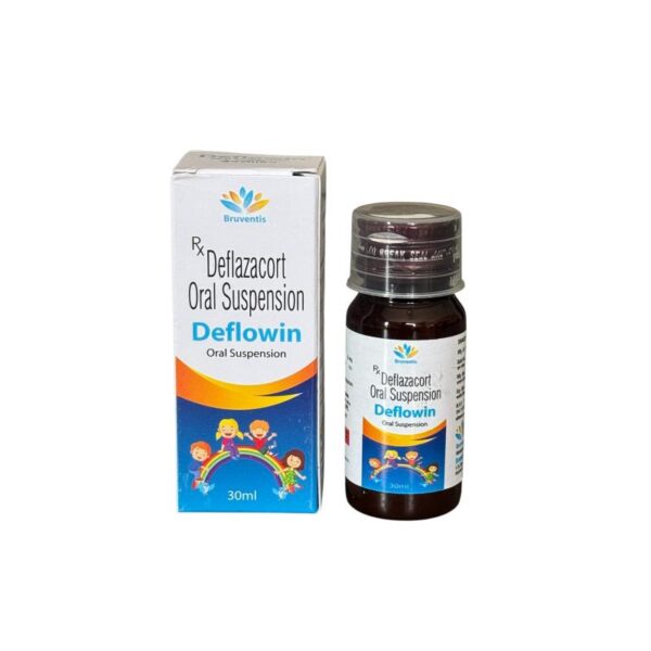 Home Syrup/Liquid DEFLOWIN SUSP DEFLOWIN SUSP USES: Used for Duchenne muscular dystrophy in infants and children. PACKING: 30ML COMPOSITION: Deflazacort 6mg (WITH MONO CARTON) Category: Syrup/Liquid Related products REXOWELL-DXSyrup/Liquid BRUVENTIS GUD HEALTH TONICSyrup/Liquid ATASET SOLUTIONSyrup/Liquid BRUVENTIS MULTIVITAMIN 100 MLSyrup/Liquid