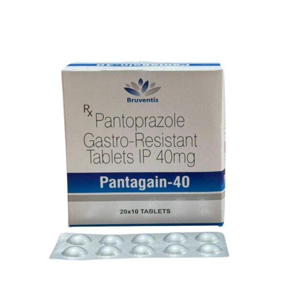 Home Tablets PANTAGAIN 40 TAB PANTAGAIN 40 TAB USES: Used in the treatment of heartburn, gastroesophageal reflux disease (acid reflux) and peptic ulcer disease. PACKING: 20 x 10 COMPOSITION: Pantoprazole 40mg (ALU-ALU) Category: Tablets Related products DIENOZONETablets MONTUVIS-ABTablets MECOBOND CD 3Tablets ACECLOVIC BENZTablets