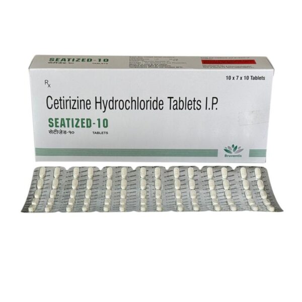 Home Tablets SEATIZED-10 TAB SEATIZED-10 TAB USES: Used in the treatment of allergic conditions. PACKING: 10 x 7 x 10 COMPOSITION: Cetirizine Dihydrochloride BP 10mg (BLISTER) Category: Tablets Related products ACECLOVIC BENZTablets MONTUVIS-ABTablets LINZOSMARTTablets DELUXETINE 20Tablets